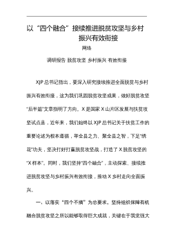 XX县迎接省巩固拓展脱贫攻坚成果同乡村振兴有效衔接工作督导组时工作情况的汇报尊敬的各位督导组的领导,同志们:某某县地处某某北部,居淮河中游,素有“淮上明珠”之美誉。某某县始建于1291年,县域总面积达某某平方公里,总人口某某万。全县辖某某个乡镇,某个省级经济开发区,某个省级现代农业示范区,某个国家级农业科技示范园区。某某是全国产粮百强县,是全国最大的糯米生产基地、全国无公害蔬菜生产基地、全国四大石榴产区之一。某某区位独特、优势明显,位于“长三角”经济圈腹地和某某经济圈外围,辐射华东、华中和华北,距某某高铁七大中心枢纽站之一的某某南站仅某某公里,距千里淮河第一大港的某某港仅某某公里,国道某某、某...