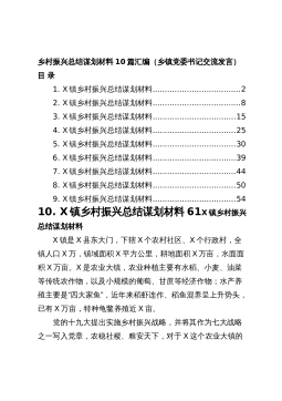 党委书记在乡村振兴专题座谈会上的工作汇报、经验交流等研讨材料汇编(12篇)