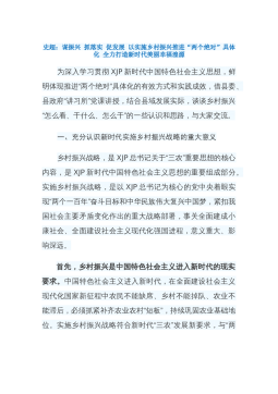 史超:谋振兴抓落实促发展以实施乡村振兴推进“两个绝对”具体化全力打造新时代美丽幸福湟源为深入学习贯彻XJP新时代中国特色社会主义思想,鲜明体现推进“两个绝对”具体化的有效方式和实践成效,借县委、县政府“讲习所”党课讲授,结合县域发展实际,谈谈乡村振兴“怎么看、干什么、怎么干”的一些认识和思路,与大家交流。一、充分认识新时代实施乡村振兴战略的重大意义乡村振兴战略,是XJP总书记关于“三农”重要思想的核心内容,是XJP新时代中国特色社会主义思想的重要组成部分。实施乡村振兴战略,是以XJP总书记为核心的党中央着眼实现“两个一百年”奋斗目标和中华民族伟大复兴中国梦,紧扣我国社会主要矛盾变化作出的重大战...