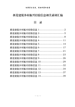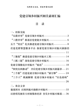 仅限学习交流,请勿抄袭和出售—1—党建引领乡村振兴相关素材汇编目录一、经验交流“五措并举”党建引领乡村振兴........................................3“三措并举”抓基层党建促乡村振兴...............................6五个“突出”扎实推进党建引领乡村振兴.......................8打造党群智慧服务平台探索党建引领乡村振兴新路径................................................................................................