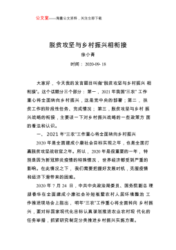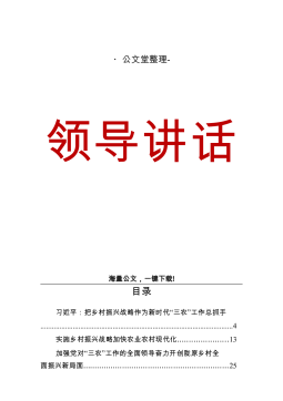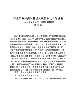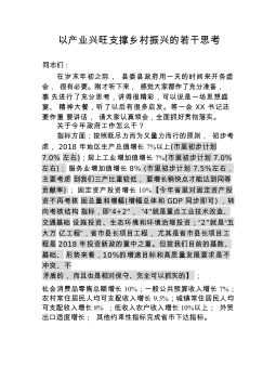 以产业兴旺支撑乡村振兴的若干思考同志们:在岁末年初之际,县委县政府用一天的时间来开务虚会,很有必要。刚才听下来,感觉大家都作了充分准备,事先进行了充分思考,讲得很精彩,可以说是一场思想盛宴、精神大餐,听了以后有很多启发。等一会XX书记还要作重要讲话,请大家认真领会,全面抓好贯彻落实。关于今年政府工作怎么干?指标方面:按照既尽力而为又量力而行的原则,初步考虑,2018年地区生产总值增长7%以上(市里初步计划7.0%左右);规上工业增加值增长7%(市里初步计划7.0%左右);服务业增加值增长8%(市里初步计划7.5%左右,主要考虑到我们三产比重较低,要增长稍快点才能达到同等贡献率);固定资产投资增...