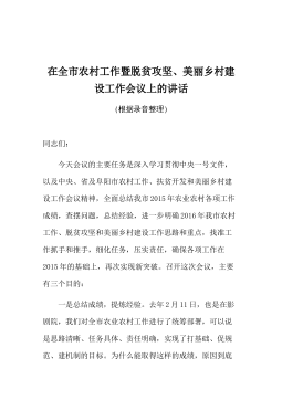 在县巩固拓展脱贫攻坚成果同乡村振兴有效衔接帮扶工作推进会议上的讲话今天上午我们组织市直帮扶单位负责人对*农牧专业合作社肉牛养殖基地、*镇*村粮饲兼用草畜循环产业示范点、*镇*村乡村建设示范村及黄芪种植示范点、*村撂荒地整治示范点、城区面山绿化工程等进行了实地观摩,现场学习了*县在发展特色优势产业和当前重点农业工作中的一些好经验、好做法,感受非常深刻。现在,我们召开*县巩固拓展脱贫攻坚成果同乡村振兴有效衔接帮扶工作推进会议,主要目的是深入学习贯彻习近平总书记关于“三农”工作重要论述,以及中央和省委农村工作会议精神,按照市委农村工作会议暨巩固拓展脱贫攻坚成果工作会议部署要求,调度推进*县巩固拓展脱...