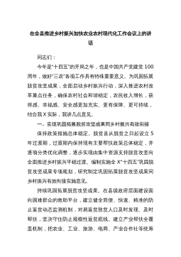 在县巩固拓展脱贫攻坚成果同乡村振兴有效衔接帮扶工作推进会议上的讲话