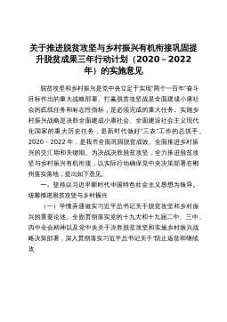 关于推进脱贫攻坚与乡村振兴有机衔接巩固提升脱贫成果三年行动计划(2020-2022年)的实施意见
