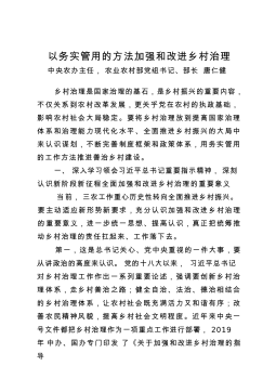 以务实管用的方法加强和改进乡村治理中央农办主任,农业农村部党组书记、部长唐仁健乡村治理是国家治理的基石,是乡村振兴的重要内容,不仅关系到农村改革发展,更关乎党在农村的执政基础,影响农村社会大局稳定。要将乡村治理放到提高国家治理体系和治理能力现代化水平、全面推进乡村振兴的大局中来认识谋划,不断完善制度框架和政策体系,用务实管用的工作方法推进善治乡村建设。一、深入学习领会习近平总书记重要指示精神,深刻认识新阶段新征程全面加强和改进乡村治理的重要意义当前,三农工作重心历史性转向全面推进乡村振兴。要主动适应新形势新要求,充分认识加强和改进乡村治理的重要意义,进一步统一思想、提高认识,真正把统筹推动乡村...