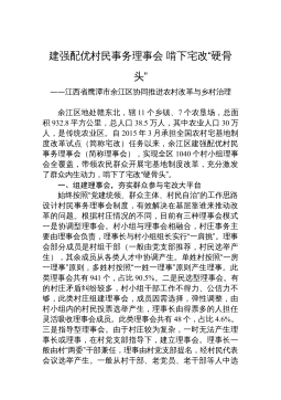 建强配优村民事务理事会啃下宅改“硬骨头”——江西省鹰潭市余江区协同推进农村改革与乡村治理余江区地处赣东北,辖11个乡镇、7个农垦场,总面积932.8平方公里,总人口38.5万人,其中农业人口30万人,是传统农业区。自2015年3月承担全国农村宅基地制度改革试点(简称宅改)任务以来,余江区建强配优村民事务理事会(简称理事会),实现全区1040个村小组理事会全覆盖,带领农民群众开展宅基地制度改革,充分激发了群众内生动力,啃下了宅改“硬骨头”。一、组建理事会,夯实群众参与宅改大平台始终按照“党建统领、群众主体、村民自治”的工作思路设计村民事务理事会制度,有效解决在基层靠谁来推动改革的问题。根据村庄情...
