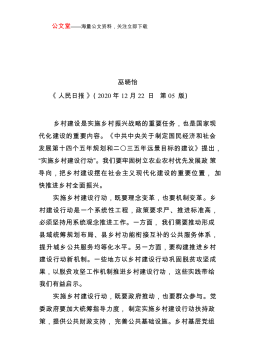公文堂——海量公文资料,关注立即下载推动乡村旅游高质量发展增添“水韵江苏”新魅力——在全国乡村旅游与民宿工作现场会上的表态发言杨志纯(2020年9月12日)发展乡村旅游,是助力乡村振兴、建设美丽中国的重要抓手。近年来,江苏文旅系统深入贯彻习近平总书记关于文化和旅游工作的重要论述,认真落实中央和省委、省政府及文旅部的部署要求,自觉践行新发展理念和以人民为中心的发展思想,聚焦高质量发展、高水平融合、高品质生活、高效能治理,扎实推进乡村旅游提质增效和乡村民宿健康发展。2019年全省乡村旅游总收入突破千亿元,现已建成39家国家级、36家省级乡村旅游重点村,形成了一批乡村民宿品牌和集聚区。我们的主要做法...