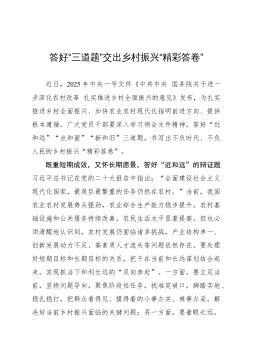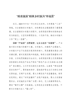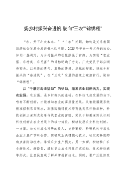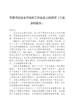 县委书记在全县乡村振兴推进会上的讲话:聚焦三农发展,绘就乡村新貌同志们:今天,我们召开全县乡村振兴推进会,主要任务是深入贯彻落实党中央、国务院关于乡村振兴的决策部署,按照省委、市委工作要求,总结我县乡村振兴工作成效,分析当前面临的形势,安排部署下一阶段重点任务,动员全县上下进一步统一思想、凝聚共识,真抓实干、攻坚克难,推动我县乡村振兴工作再上新台阶。近年来,全县各级各部门坚持以习近平新时代中国特色社会主义思想为指导,深入学习贯彻习近平总书记关于“三农”工作的重要论述,紧紧围绕“产业兴旺、生态宜居、乡风文明、治理有效、生活富裕”总要求,统筹推进乡村振兴各项工作,取得了阶段性成效。农业产业结构不断...