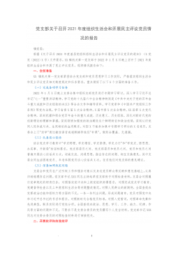 党支部关于召开2021年度组织生活会和开展民主评议党员情况的报告.Doc
