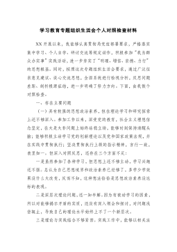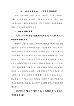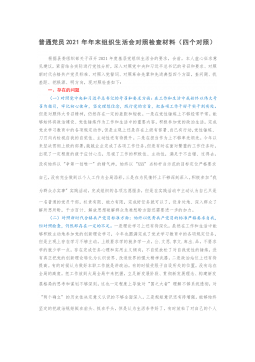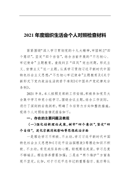 2021年度组织生活会个人对照检查材料根据县委组织部《关于召开2021年度基层党组织组织生活会和开展民主评议党员工作的通知》要求,会前本人深入学习了规定篇目,进一步加深了对习近平新时代中国特色社会主义思想的认识理解,坚定了政治立场、锤炼了党性修养,为开好这次组织生活会奠定了坚实的思想基础。同时,紧密结合工作实际,深入开展谈心谈话、广泛征求意见建议、深刻剖析问题根源,明确了整改措施和今后的努力方向。现将个人对照检查情况汇报如下:一、存在的主要问题(一)在学懂弄通做实习近平新时代中国特色社会主义思想,把握正确政治方向,提高政治能力,增强“四个意识”坚定“四个自信”、做到“两个维护”方面。一是理论学...