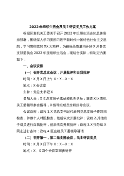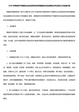 202X年领导班子专题民主生活会和党支部专题组织生活会暨民主评议党员工作实施方案根据校党委组织部《关于认真开好202X年度学校中层领导班子专题民主生活会和党支部专题组织生活会暨民主评议党员工作的通知》要求,现就做好化材学院领导班子专题民主生活会和党支部专题组织生活会暨民主评议党员工作,制定如下方案。一、总体要求围绕学习贯彻党十九届六中全会精神,以“大力弘扬伟大建党精神,坚持和发展党的百年奋斗历史经验,坚定历史自信,践行时代使命,厚植为民情怀,勇于担当作为,团结带领人民群众走好新的赶考之路”为主题,召开中层领导班子的党史学习教育专题民主生活会和党支部的党史学习教育专题组织生活会。二、会前准备1、...