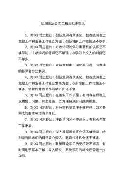 组织生活会会前谈心谈话记录谈话人xxx谈话时间xxxx年xx月谈话对象谈话内容xxx:根据近期开好组织生活会的要求,开展班子成员一对一谈心交流,希望你能畅所欲言,关于近期的学习,结合自身你有哪些认识?xxx:通过党史学习教育,在一定程度上提高了党的思想觉悟,责任意识差,有时满足于管好自己,对见到的问题不愿意多说,不想多说,不愿意得罪人,不想得罪人,没有从大局上考虑问题。xxx:能发现自身问题,并正视这些突出问题,还要在理想信念上对自己设有高标准、严要求,业务学习要专心,不能半途而废。xxx:今天谈心使我收获颇丰,也使我深受教育,增强了我对党的理想信念和纪律意识,忠诚于党的信仰、党的宗旨、党的组...