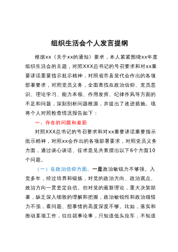 组织生活会会前谈心谈话记录谈话人xxx谈话时间xxxx年xx月谈话对象谈话内容xxx:根据近期开好组织生活会的要求,开展班子成员一对一谈心交流,希望你能畅所欲言,关于近期的学习,结合自身你有哪些认识?xxx:通过党史学习教育,在一定程度上提高了党的思想觉悟,责任意识差,有时满足于管好自己,对见到的问题不愿意多说,不想多说,不愿意得罪人,不想得罪人,没有从大局上考虑问题。xxx:能发现自身问题,并正视这些突出问题,还要在理想信念上对自己设有高标准、严要求,业务学习要专心,不能半途而废。xxx:今天谈心使我收获颇丰,也使我深受教育,增强了我对党的理想信念和纪律意识,忠诚于党的信仰、党的宗旨、党的组...
