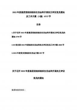 2023党支部召开2022年度组织生活会和开展民主评议党员主持词各位领导、同志们:按照X直机关党工委《关于召开2022年度组织生活会和开展民主评议党员的通知》要求,今天下午,我们召开X党支部2022年度组织生活会。组织生活会是统一党员思想,增强党性修养和组织观念,加强党支部自身建设的非常重要的会议,对于每个党员,特别是党员领导干部,对解决党内矛盾和问题,加强党的团结统一,增进同志之间的思想交流,增强党组织的活力,都具有重要的意义。尤其是今年是宣传贯彻落实党的二十大精神的首要之年,作为党员干部,要学在前头、干在前列,作好表率、当好示范,带头统一思想和行动,在全面学习、全面把握、全面落实上下功夫,...