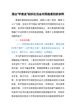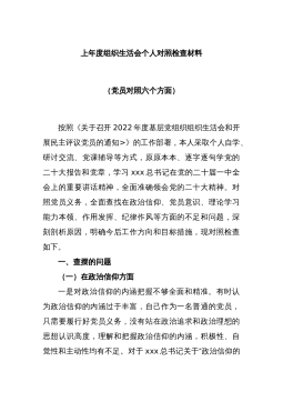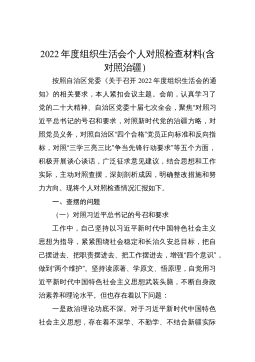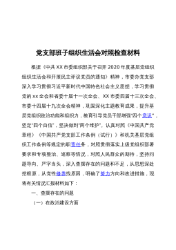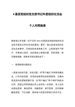 2023年度组织生活会对照检查材料范文篇1按照州*局组织生活会安要求,本人结合作风建设整顿这一主题。深刻进行自我剖析检视存在的差距和自身不足,深挖思想根源,明确下一步工作的努力方向和整改措施。现将具体情况报告如存在的问题及表现(一)在学习贯彻党的十九大精神方面对习近平新时代中国特色社会主义思想的理解不深刻,在学懂、弄通、做实十九大精神方面做得不够,在搞好理论武装、加强思想建设方面还存有差距。学习不深不透,满足于-知半解,特别是在将十九大精神和习近平新时代中国特色社会主义思想与实际工作相结合,还没有达到融会贯通的境界。理论的功底不深,还没有学会运用这些理论的立场、观点方法解决实际问题。考虑问题站...