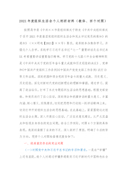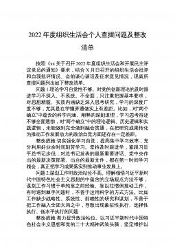 2022年民主组织生活会个人对照检查材料(对照六个方面+)范文