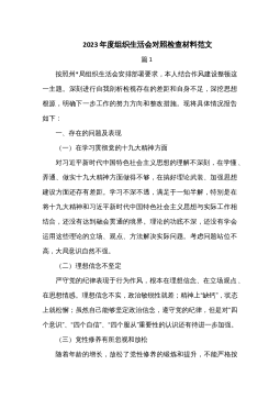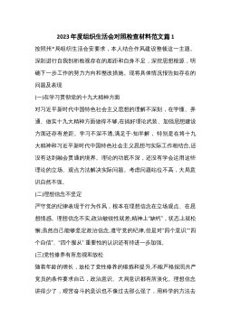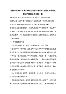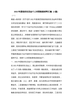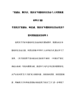 “迎盛会、聚共识、强担当”专题组织生活会个人对照检查材料(2篇)市直机关“迎盛会、铸忠诚、强担当”专题组织生活会党员干部对照检查发言材料1按照关于开好专题组织生活会的相关通知要求,我紧扣此次专题组织生活会主题,利用支部集中学和个人自学的方式,重点学习了党章、《关于新形势下党内政治生活的若干准则》《中国共产党纪律处分条例》等党内重要法规,跟进学习XJP总书记系列重要讲话。从严从实对照“五个方面”深入查摆问题,深刻剖析原因、深挖思想根源,明确努力方向和改进措施,有效提高了政治“三力”,进一步增强了捍卫“两个确立”、践行“两个维护”的政治自觉思想自觉行动。现将对照检查情况汇报如下。一、存在的主要问题...