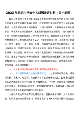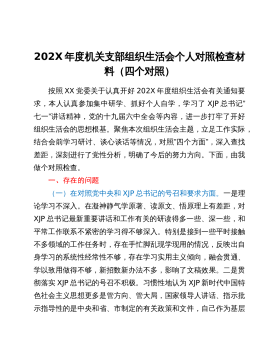 2022年“迎盛会、铸忠诚、强担当”专题组织生活会个人对照检查发言材料按照关于开好专题组织生活会的相关通知要求,我紧扣此次专题组织生活会主题,利用支部集中学和个人自学的方式,重点学习了党章、《关于新形势下党内政治生活的若干准则》《中国共产党纪律处分条例》等党内重要法规,跟进学习XJP总书记系列重要讲话。从严从实对照“五个方面”深入查摆问题,深刻剖析原因、深挖思想根源,明确努力方向和改进措施,有效提高了政治“三力”,进一步增强了捍卫“两个确立”、践行“两个维护”的政治自觉思想自觉行动。现将对照检查情况汇报如下。一、存在的主要问题(一)新时代中国特色社会主义思想方面。一是在学深悟透、把握精神实质上...