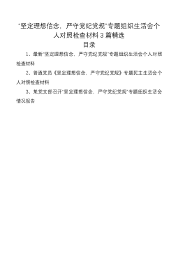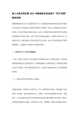 2021年度组织生活会“四个对照”个人对照检查材料参考汇编(3篇)目录1.2021年度组织生活会“四个对照”个人对照检查材料参考(一)3.2021年度组织生活会“四个对照”个人对照检查材料参考(二)2021年度组织生活会“四个对照”个人对照检查材料参考(一)按照《关于召开2021年度XX机关基层党组织组织生活会和民主评议党员的通知》,会前,本人通过集中学习、个人自学、党小组讨论、外出参观等方式认真学习习近平总书记“七一”重要讲话及总书记来XX考察重要讲话重要指示精神,学习党的十九届六中全会精神特别是《中共中央关于党的百年奋斗重大成就和历史经验的决议》、党章和《中国共产党组织工作条例》《中国共产...