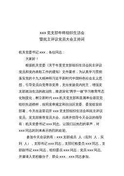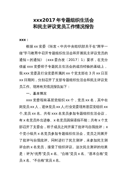 xxx2017年专题组织生活会和民主评议党员工作情况报告xxx:根据xx党委《转发<中共中央组织部关于在“两学一做”学习教育中召开专题组织生活会和开展民主评议党员的通知>的通知》(xxx委办发〔2017〕1)要求,在充分借鉴xxx党委班子专题民主生活会的成功经验的基础上,我xxx党委及行业党委所属的xx个党支部在3月xx日至xx日期间,分别召开了支部专题组织生活会和民主评议党员工作。现将有关情况报告如下:一、基本情况xxx党委现有基层党组织xx个,党员xx名,其中在岗党员xx人,退休党员xx人;行业党委现有基层党组织xx个,党员xx名。共有xxx名党员参加专题组织生活会议,有x名党员外出进修、...