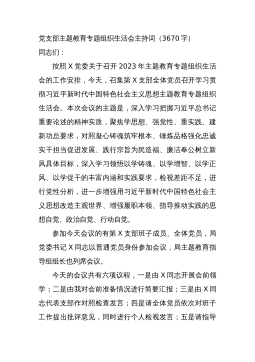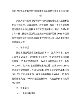 2023组织生活会和开展民主评议党员情况自查报告(2篇)(一)按照中共XX委员会组织部《关于开展组织生活会和民主评议党员“回头看”的通知》要求和XX机关党委工作安排,国家统计局XX党支部高度重视,于2023年3月XX0至3月XX0,对2023年度党支部组织生活会和开展民主评议党员情况进行了全面自查。现将具体情况汇报如下:一、会前准备情况(一)集中学习和研讨方面。XX党支部坚持把思想教育作为会前的首要任务,一是第一时间召开会议,传达学习《通知》精神,明确各环节工作要求,把准工作方向,做好会议筹备工作;二是制定了党员自学和集中学习计划,明确学习目标、学习内容、学习要求,并编辑整理发放学习资料,指导...