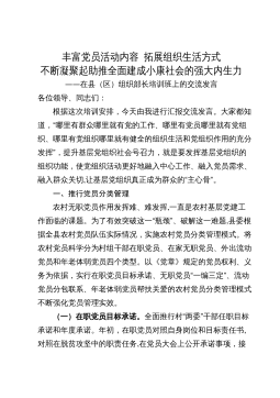 丰富党员活动内容拓展组织生活方式不断凝聚起助推全面建成小康社会的强大内生力在县(区)组织部长培训班上的交流发言