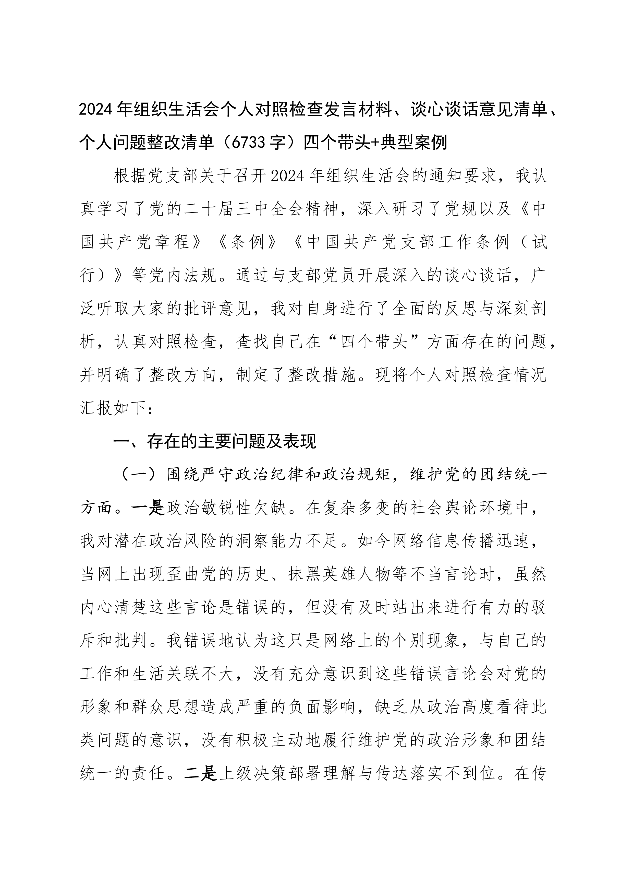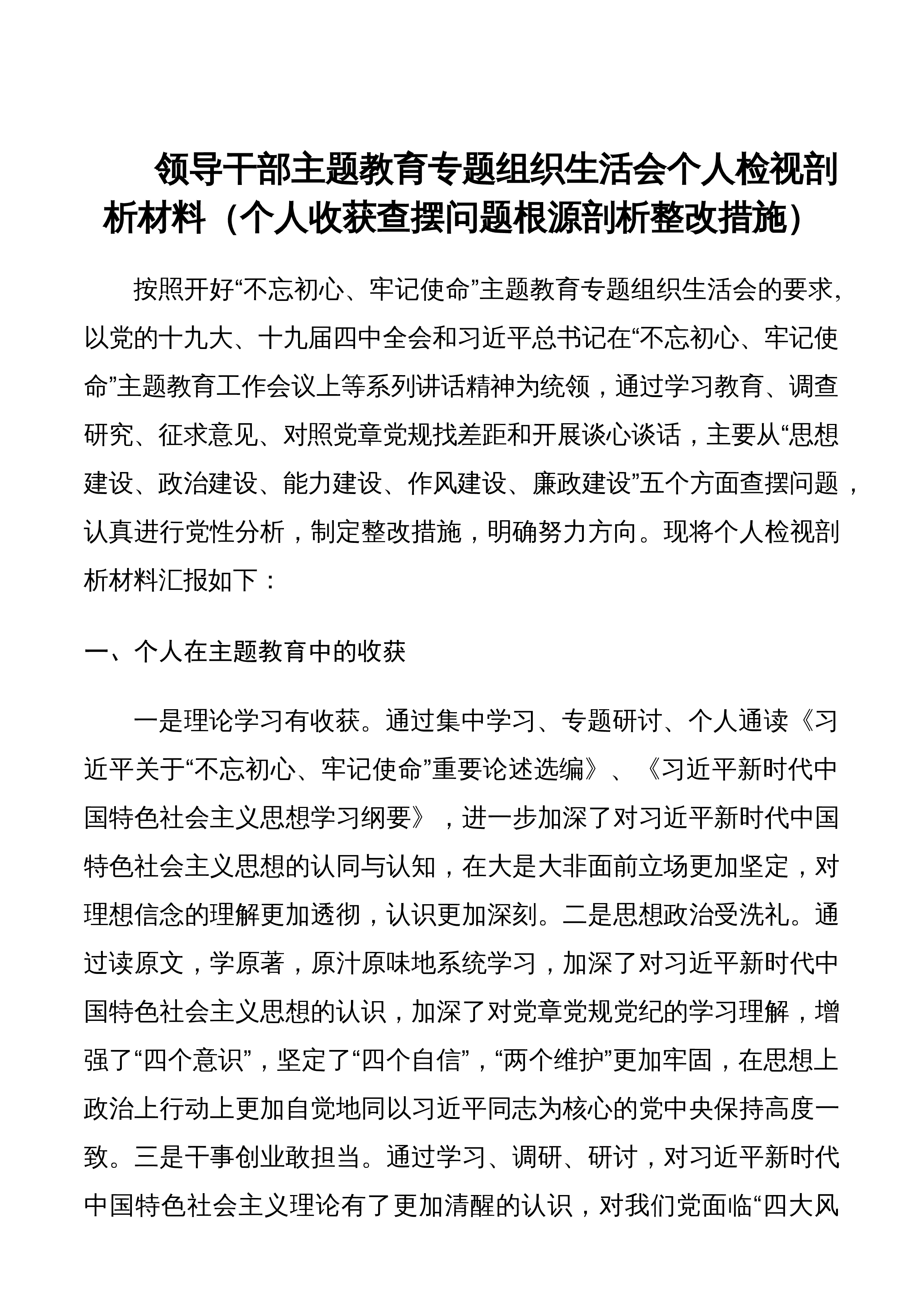 领导干部主题教育专题组织生活会个人检视剖析材料(个人收获查摆问题根源剖析整改措施)