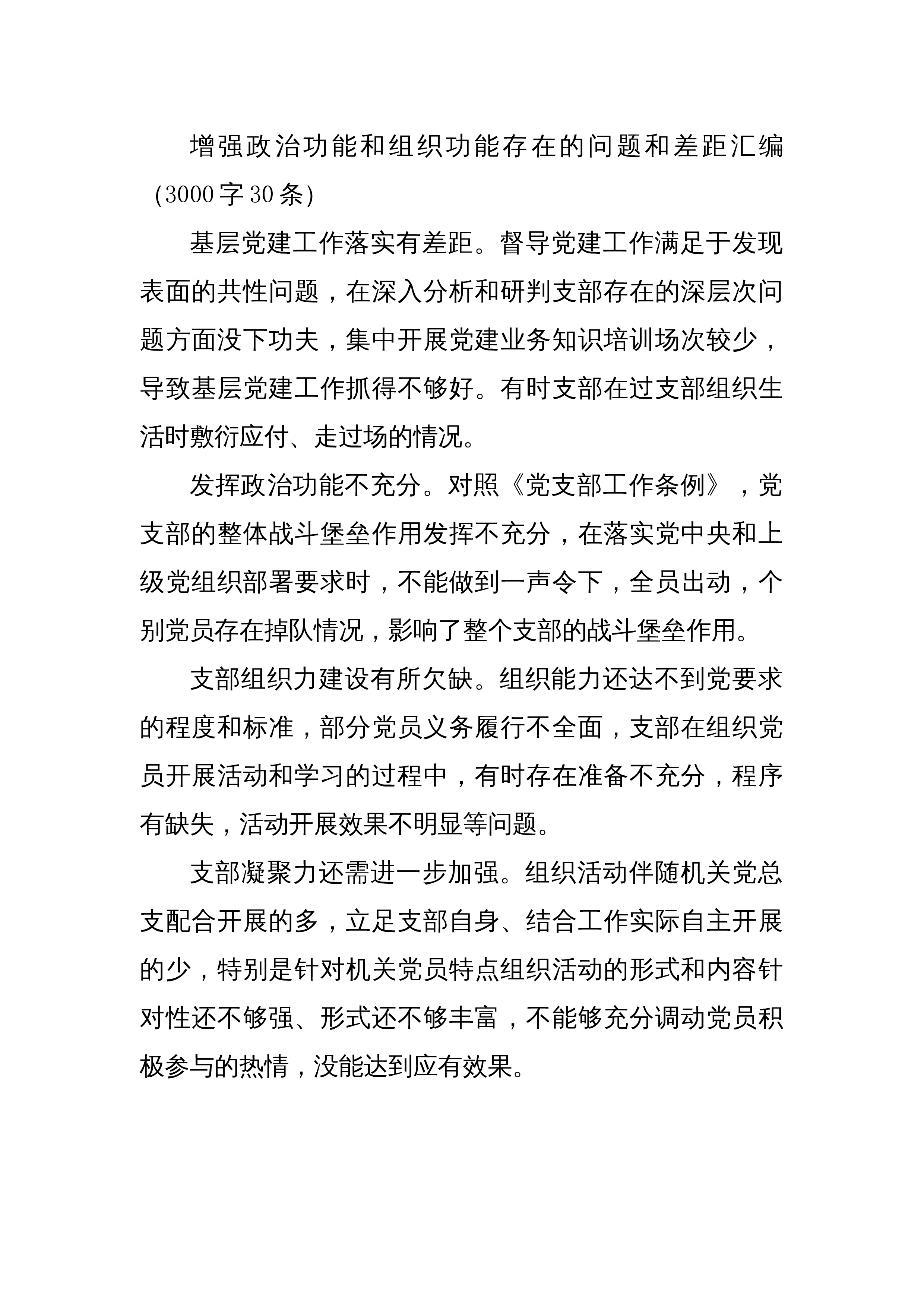 增强政治功能和组织功能存在的问题和差距汇编 组织生活会(3000字30条)