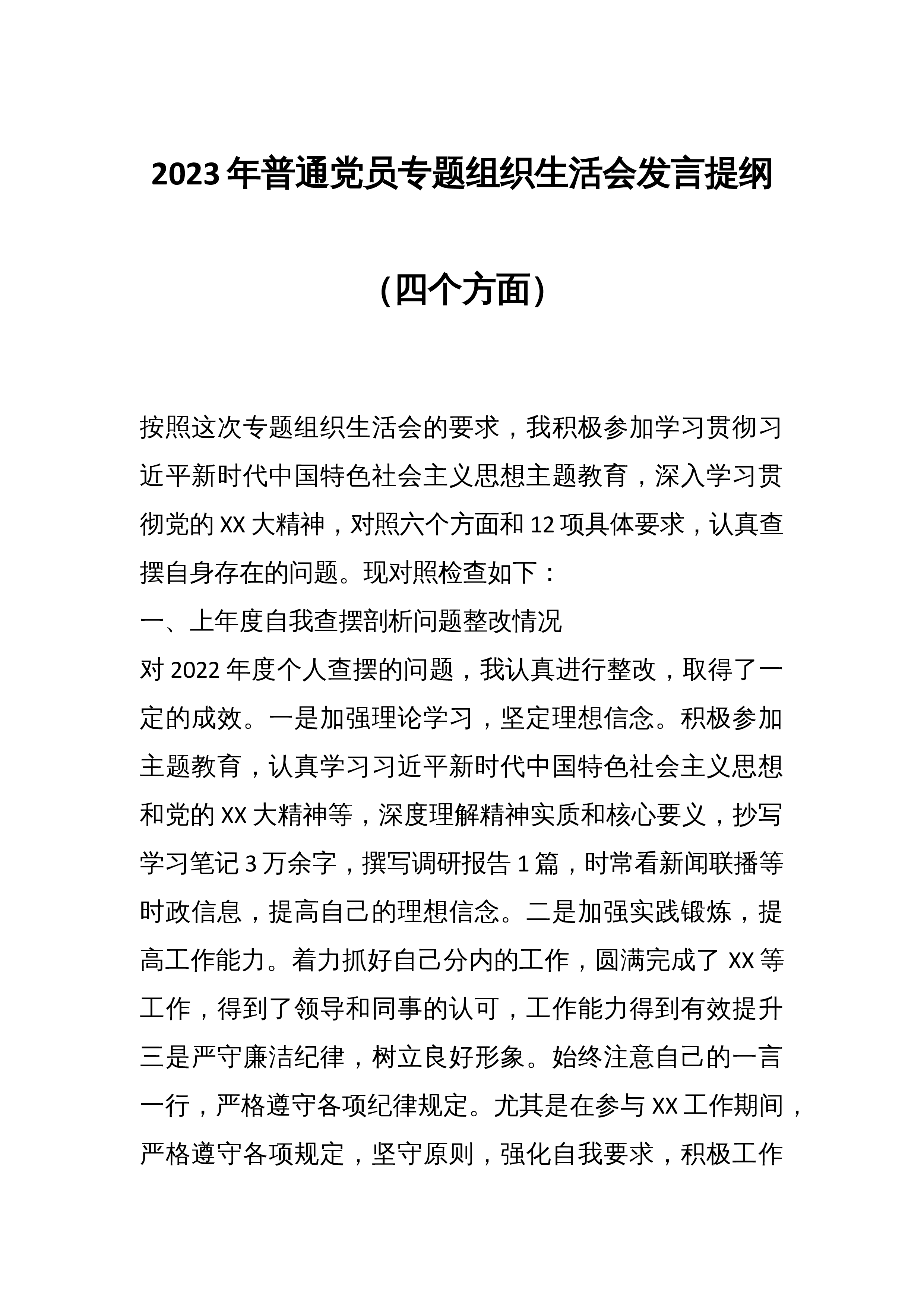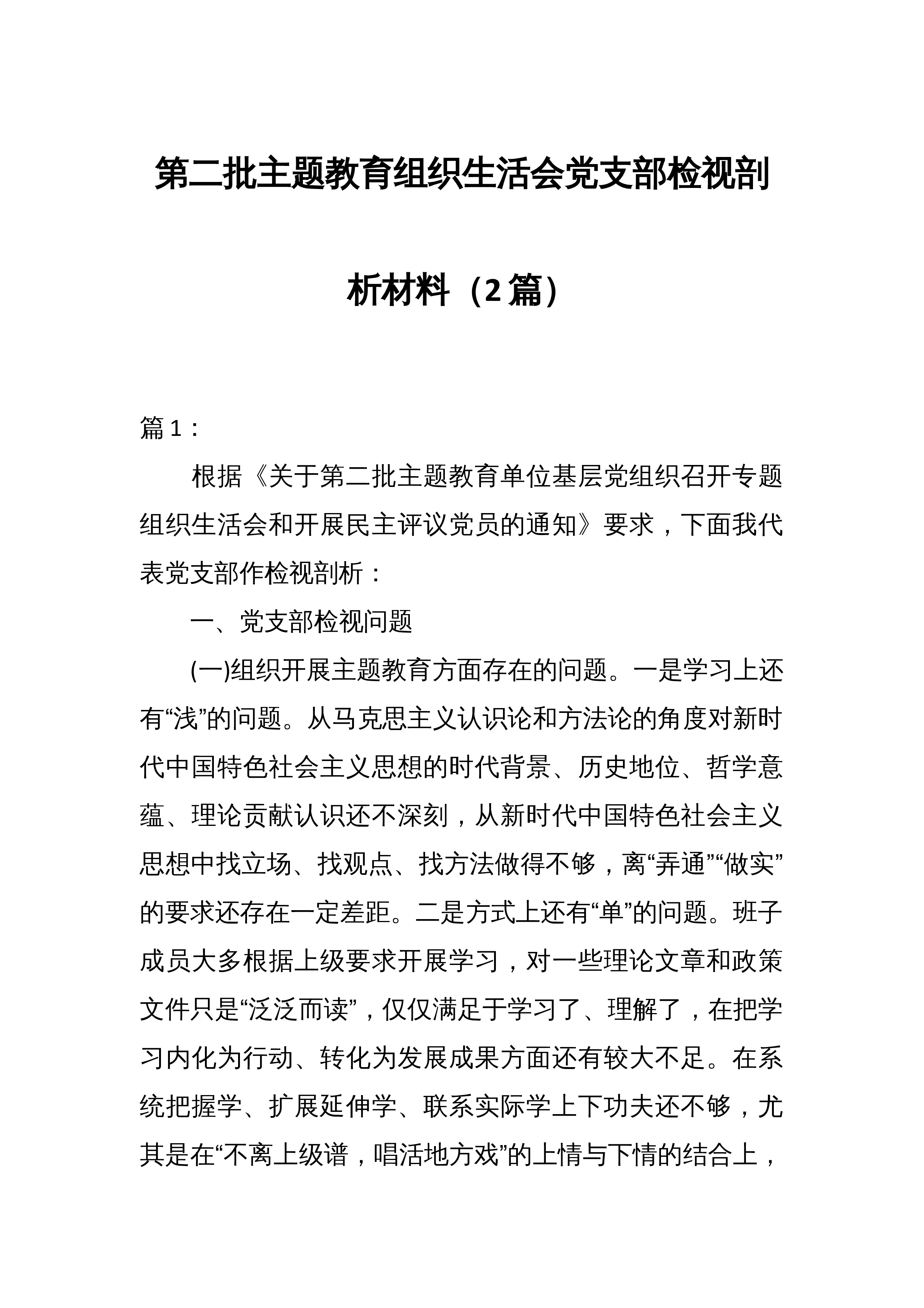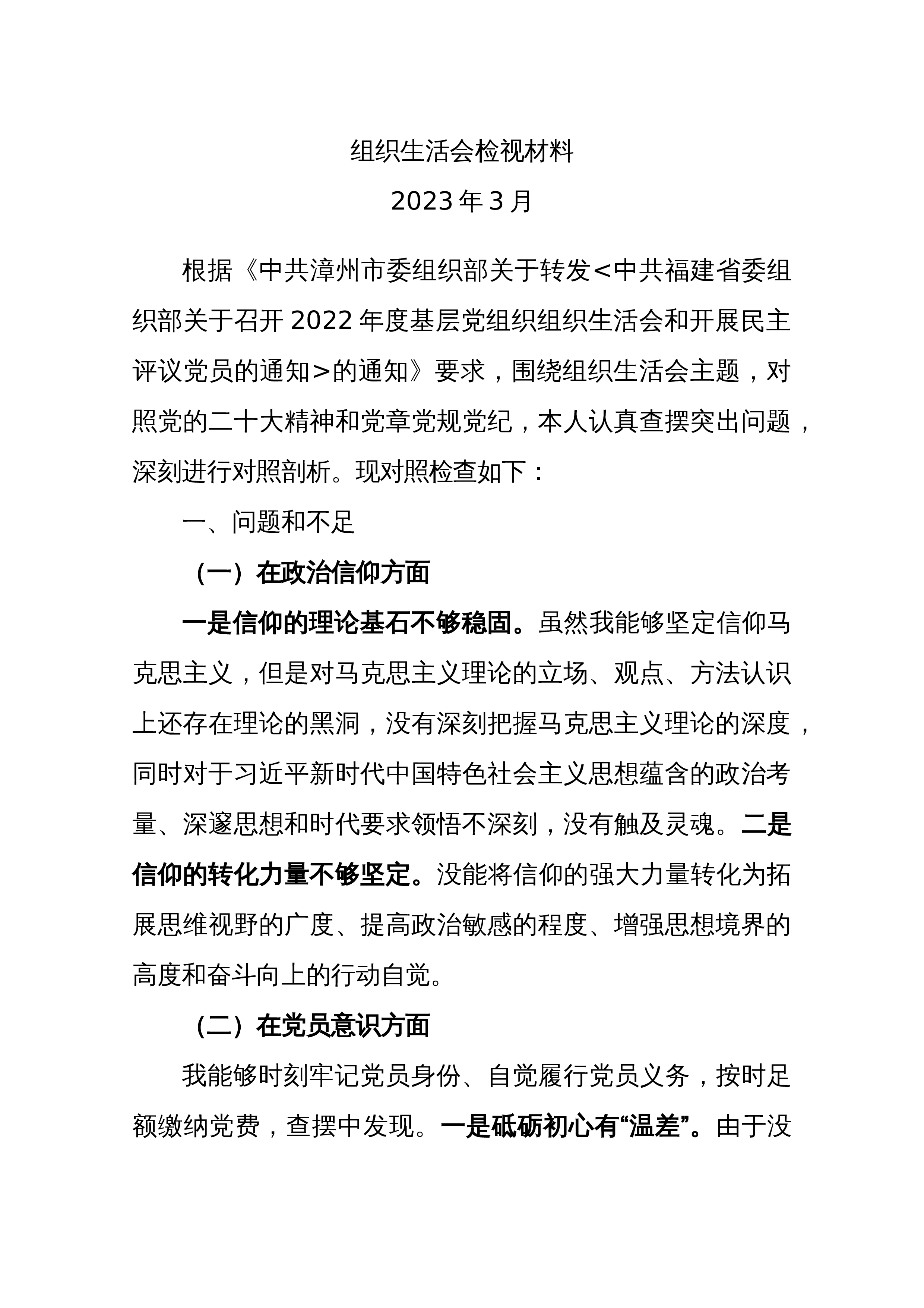 2篇2023组织生活会和开展民主评议党员情况自查报告