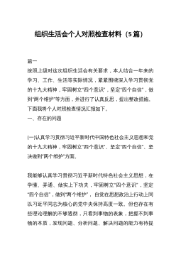 部队学习训练专题组织生活会五个方面个人对比检查材料(3篇)部队学习训练专题组织生活会五个方面个人对比检查材料1根据市纪委、市委组织部和关于召开20XX年度民主生活会精神,会前,我认真学习了新时代中国特色社会主义思想、党的精神,研读《谈治国理政》第三卷,学习总书记在党的、在全国抗击新冠肺炎疫情表彰大会、纪念中国人民志愿军抗美援朝出国作战70周年大会上的重要讲话精神,为开好民主生活会奠定了坚实的思想基础。在发言材料撰写过程中,我坚持按照有关要求,紧紧围绕带头学习贯彻新时代中国特色社会主义思想、带头坚持和加强党的全面领导、带头履职尽责担当作为、带头学习贯彻党的精神、带头落实全面从严治党责任等五个方面...