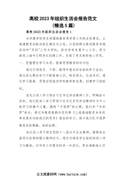 党员个人及领导班子2022年度专题组织生活会对照检查、发言材料、情况报告及征求意见表汇编(31篇)1.区机关党员2022年组织生活会个人对照检查材料2.水利局党组书记民主生活会个人对照检查材料3.区委常委领导班子2022年度民主生活会对照检查材料4.2022年度组织生活会个人对照检查材料(党员干部)5.2022年度组织生活会对照检查材料6.2022年度组织生活会党员对照检查材料7.党员个人组织生活会对照检查材料8.行政审批局(政务服务中心)2022年度组织生活会个人对照检查材料9.党员个人2022年度组织生活会对照检查材料10.副县长2022年度民主生活会对照检查材料11.某乡镇党委书记202...