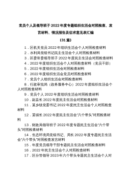 (31篇)党员个人及领导班子2022年度专题组织生活会对照检查、发言材料、情况报告及征求意见表汇编