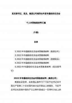 (5篇)党支部书记、党员、集团公司领导在年度专题组织生活会个人对照检查材料汇编