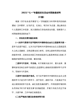 (3篇)2021“七一”专题组织生活会对照检查材料