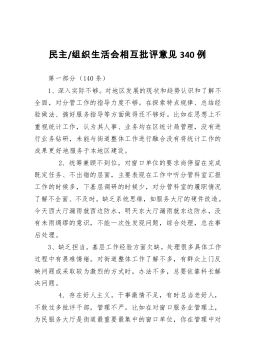 目录“不忘初心、牢记使命”主题教育专题民主生活会、组织生活会和开展民主评议党员方案附件:1.《“不忘初心、牢记使命”主题教育专题民主(组织)生活会谈心谈话记录表》附件:2.《“不忘初心、牢记使命”专题民主生活会党委班子对照检查材料参考模板》附件:3.《“不忘初心、牢记使命”主题教育专题民主生活会党委班子成员检视剖析材料参考模板》附件:4.《“不忘初心、牢记使命”主题教育专题民主生活会相互批评意见汇总表》附件:5.《“不忘初心、牢记使命”主题教育专题组织生活会党支部征求意见表》附件:6.《“不忘初心、牢记使命”主题教育专题组织生活会支委班子对照检查材料参考模板》附件:7.《“不忘初心、牢记使命”...