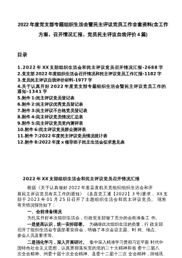 2022年度党支部专题组织生活会暨民主评议党员工作全套资料(含工作方案、召开情况汇报、党员民主评议自我评价)