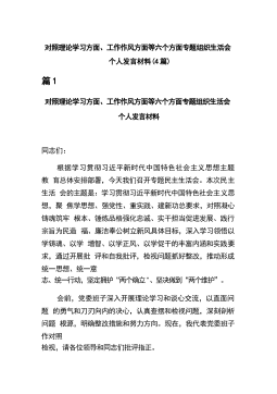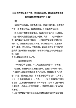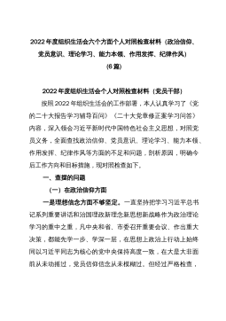 纪检监察干部、办公室领导、人社系统党员、医院科室主任、国企公司、机关单位党支部2023年组织生活会在克服形式主义、官僚主义等“六个方面”对照检查材料(8篇)【目录】1.纪检监察干部2023年组织生活会在牢记“国之大者”、对党忠诚、为党分忧、为党尽责、为党奉献等“六个方面”个人发言提纲2.办公室党员干部2022年民主生活会六个帶头个人对照检查发言提纲3.机关党员干部个人2023年组织生活会在发扬斗争精神、勇于担当作为、克服形式主义、官僚主义等“六个方面”对照检查材料4.2023年市人社系统党员干部组织生活会在发扬斗争精神、勇于担当作为等“六个方面”个人对照检查材料5.医院科室主任个人2023年组...