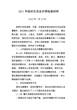 党支部2024年度组织生活会班子对照检查材料(1)根据局机关党委《关于召开2024年度组织生活会的通知》有关要求,党支部紧紧围绕本次组织生活会主题,结合自身实际情况,认真对照“四个带头”,全面深入查摆了自身存在的突出问题,认真分析了问题产生的原因,逐项明确了下一步整改措施。按照会议安排,现将对照检查情况汇报如下。一、存在的主要问题(一)在带头严守政治纪律和政治规矩,维护党的团结统一方面。一是理论学习深度不够。支委委员虽能积极参与各类组织纪律和规矩的学习活动,但学习深度不够,往往浮于表面。在学习党纪党规时,只是简单地了解条文,未深入探究其背后的意义与目的,对相关理论与制度的深层次内涵挖掘不足。这...