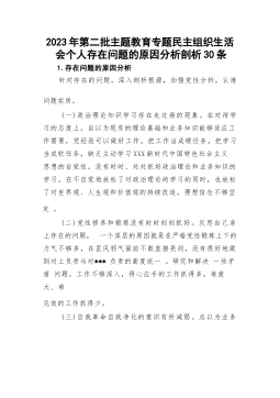2023年第二批主题教育专题民主组织生活会个人存在问题的原因分析剖析30条