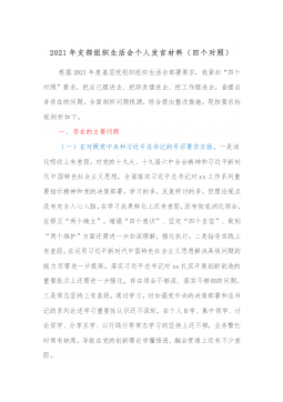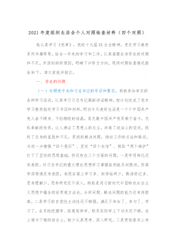 2021年度组织生活会“四个对照”个人存在问题、原因分析、整改措施汇总(1)