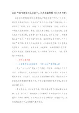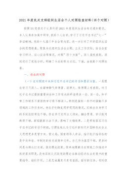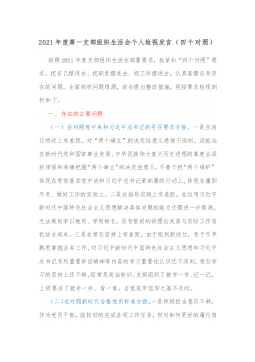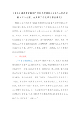 (国企)基层党支部书记2021年度组织生活会个人剖析材料(四个对照、含支部工作及学习落实情况)