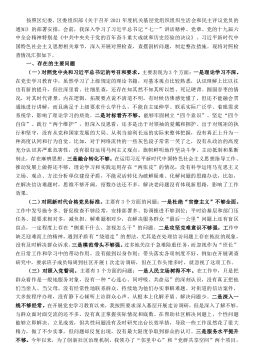 县人大常委会机关党支部2021年度组织生活会班子“四个对照”支委班子对照检查剖析材料