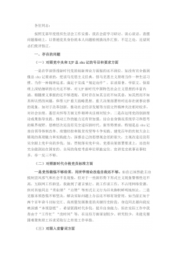 按照公司党委关于召开组织生活会的安排,下面,向全体党员报告党支部年度工作。一、上年度组织生活会整改情况一是支委作用发挥不好,支委党建工作职责落实上存在差距的问题,一年来,党支部认真落实支部党建工作责任,注重发挥支部委员职能作用,建立完善党建基本制度,明确支委工作职责清单,支部委员能够履职尽责,切实把公司党委的各项要求落实到具体的工作实践之中。二是支部工作争先创优、基础工作方面有差距的问题。党支部加强“三会一课”基本制度落实,严格党内组织生活,紧密结合工作实际,完善支委会、党员大会程序内容,以岗位目标承诺和党员承诺、点评为主要内容,发挥“三会一课”政治功能和组织优势。三是在党员教育管理方面存在不...