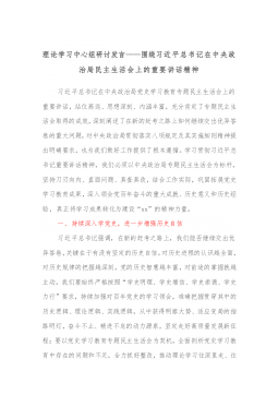 理论学习中心组研讨发言——围绕习近平总书记在中央政治局民主生活会上的重要讲话精神习近平总书记在中央政治局党史学习教育专题民主生活会上的重要讲话,站位高远、思想深刻、内涵丰富,充分肯定了专题民主生活会取得的成效,深刻阐述了在新的赶考之路上如何继续交出优异答卷的重大问题,对中央政治局贯彻落实八项规定及其实施细则精神提出明确要求,也为我们做好工作提供了根本遵循。学习贯彻习近平总书记重要讲话精神,我们必须以中央政治局专题民主生活会为标杆,坚持刀刃向内、直面问题、真查真改,结合工作实际,巩固拓展党史学习教育成果,深入领会党百年奋斗的重大成就、历史意义和历史经验,真正将学习成果转化为建设“xx”的精神力量...