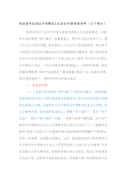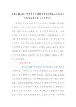 县委办副主任、党支部书记2022年年末专题民主生活会对照检查发言材料(五个带头)