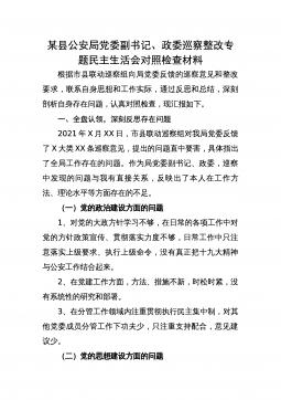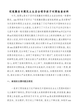巡视整改专题民主生活会领导班子对照检查材料今天,按照x委关于召开巡视整改专题民主生活会的统一部署和要求,xxx领导班子召开以“巡视整改暨全面彻底肃清xx恶劣影响”为内容的专题民主生活会,会前重温了习近平新时代中国特色社会主义思想和党的十九大报告,认真学习了7月5日习近平总书记听取十九届中央第一轮巡视综合情况汇报时的重要讲话精神和xx书记在中央第xx巡视组巡视反馈意见整改工作动员大会上的讲话精神,在广泛开展谈心谈话,有针对性地听取各方面意见建议的基础上,重点围绕中央巡视组反馈的6个方面的问题,再次对照今年xx月召开的坚决彻底肃清xxx流毒影响专题民主生活会的6个方面问题进行对照检查,我认为非常重...