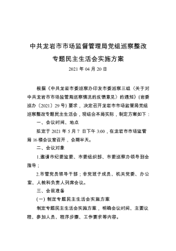 中共龙岩市市场监督管理局党组巡察整改专题民主生活会实施方案(20210420)