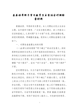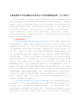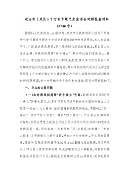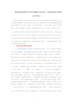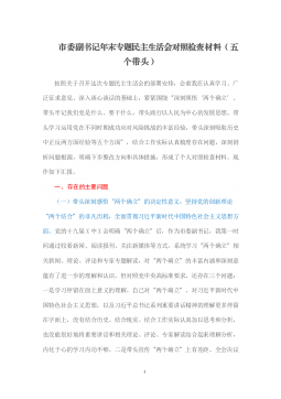 2021年末专题民主生活会个人对照检查材料(党员、五个带头)(4146字)按照《关于认真开好2021年度民主生活会的通知》要求,我认真参加集中学习,深入研读党章、《中共中央关于加强党的政治建设的意见》、习近平总书记在中央政治局民主生活会上的重要讲话精神等规定内容,进一步夯实了理论根基、提高了政治站位。同时,采取现地调研、走访座谈、谈心交心等方式,广泛征求意见建议,并严格对照“在感悟“两个确立”,树立正确党史观、在心系“国之大者”,履职担当作为、在带头践行以人民为中心的发展思想、在保持战略定力,勇于自我革命、运用党的成功经验、全面从严治党”五个方面,深入查找差距不足、剖析问题根源、制定整改措施。...