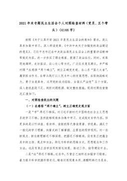 2021年末专题民主生活会个人对照检查材料(党员、五个带头)(4146字)