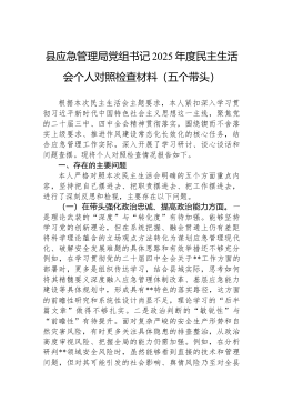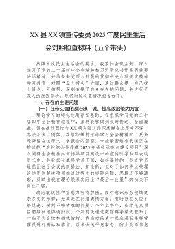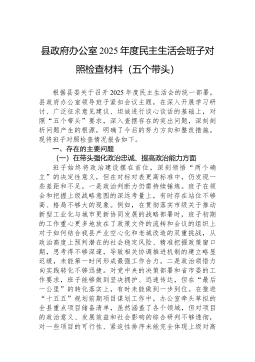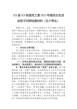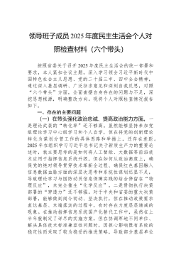 区人力资源和社会保障局领导班子2025年度民主生活会对照检查材料(五个带头)根据区委关于召开2025年度民主生活会的统一部署,*区人力资源和社会保障局领导班子紧扣会议主题,深入学习领会习近平新时代中国特色社会主义思想和党的二十届三中、四中全会精神,扎实开展深入贯彻中央八项规定精神学习教育,通过多种方式广泛征求意见建议,深入开展谈心谈话,并在此基础上,对照“五个带头”要求,全面查摆问题,深刻剖析根源,明确整改方向。现将班子对照检查情况报告如下。一、存在的主要问题(一)在带头强化政治忠诚、提高政治能力方面。一是将宏观政策转化为具体实践的穿透力有待加强。班子在组织学习党的二十届四中全会精神时,能够深刻认识到全会对“十五五”时期发展的顶层设计和战略擘画的重大意义,但在将“发展新质生产力”“推动高质量...